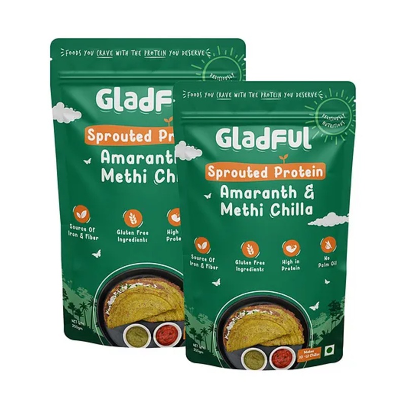 Gladful Methi Protein Sprouted lentils & millets Instant Cheela Dosa Mix Pack of 2 – 200 g Each