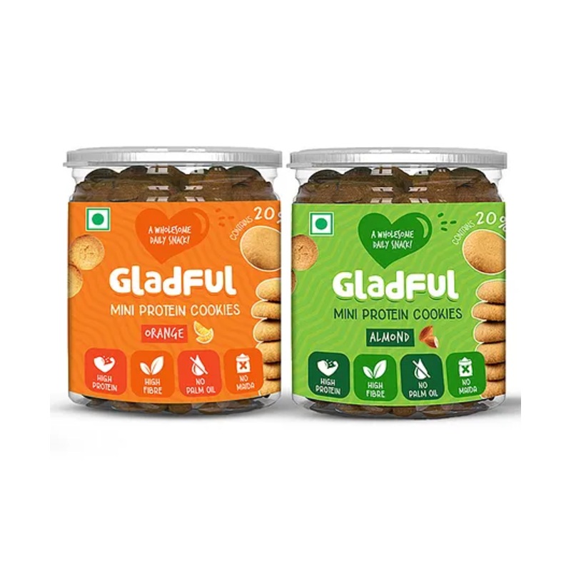 Gladful Protein Mini Cookies For Kids & Families Almond & Orange Pack of 2- 150 gm Each