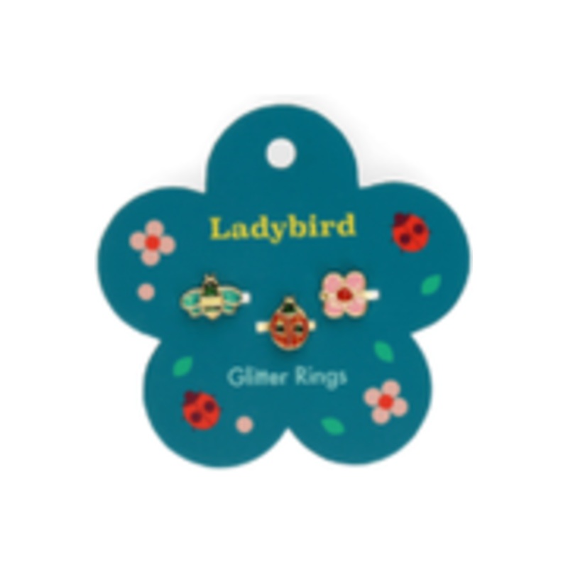 Rex London Glitter Rings/3 Ladybird: Sparkle and Shine with Nature-Inspired Fun!Add a touch of sparkle to your style with our Rex London Glitter Rings/3 Ladybird. Featuring charming designs of a ladybird, bumblebee, and flower, these glittery rings are the