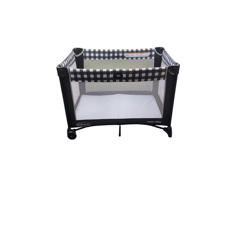Condition: Gently Used This unique Pack 'n Play features folding feet and wheels for 20% more compact fold than other Graco playards. The full-size infant bassinet provides an easy-to-reach and easy-to-view spot for your baby to sleep. Make sure your littl