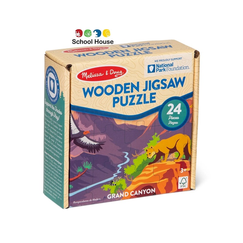 - Fit together 24 wooden jigsaw pieces to complete a colorful Grand Canyon National Park scene featuring native plants and animals