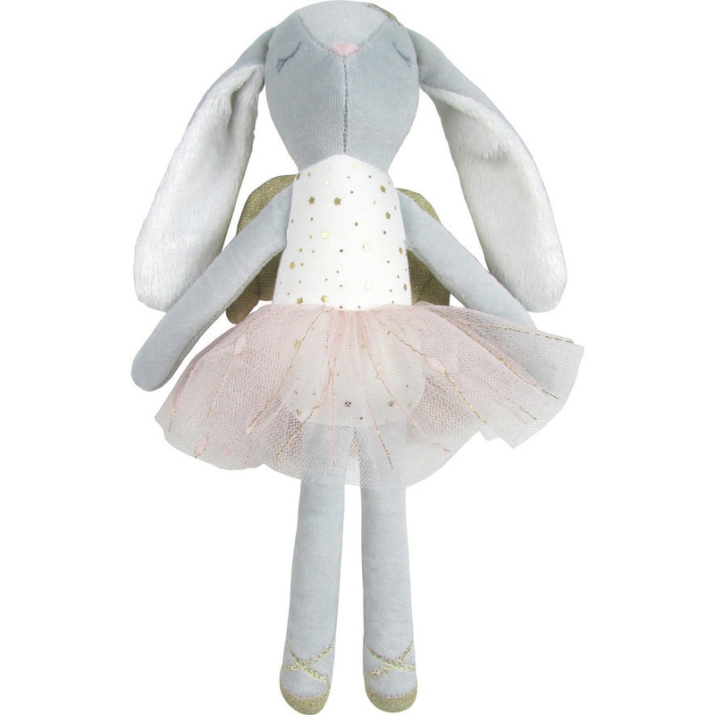Beautiful velvet bunny doll with handmade clothing and pretty details. Golden angel wings on the back.Key Features:11 height100% cottonImported