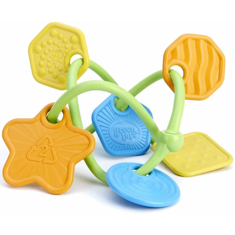 Shake, rattle and explore with the My First Green Toys? Twist Teether. Tiny hands can easily grasp this lightweight, three dimensional, ultra-safe teether. Each uniquely shaped and colorful charm has a distinct texture to stimulate visual and tactile sense