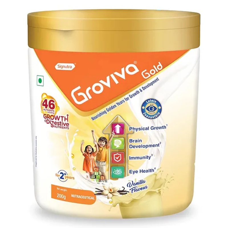 Groviva Gold Milk Protein Powder Vanilla Jar With 46 Nutrients including Growth & Digestive Nutrients – 200 g