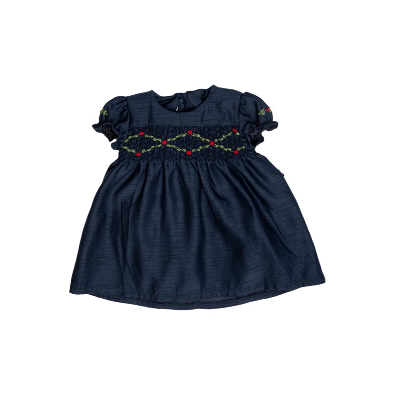 Hand Smocked Silk Navy Short Sleeve Baby 3M