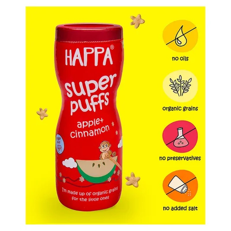 Happa Organic Multigrain Apple & Cinnamom Melts Super Puffs | Pack of 1 | Healthy Finger Food For Babies | 8M+ | 40 gm