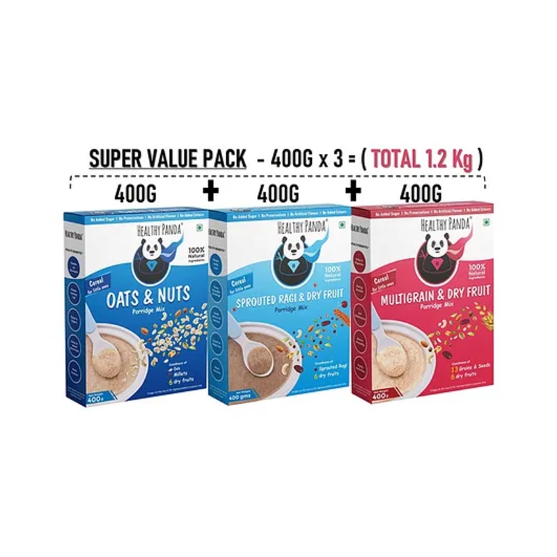 (400 g Oats & Nuts Baby Cereal Mix) + (400 g Sprouted Ragi & Dry fruit Cerelac Mix) + (400g Rava & Dry Fruit baby food) and a Spoon