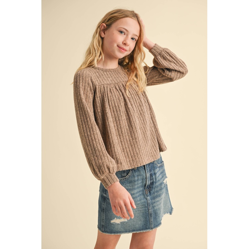 Crew Neck Long Sleeve Babydoll Sweatshirt with Back Cut OutA cozy crew neck sweatshirt with a playful babydoll silhouette for a relaxed, feminine fit. The standout feature is the back cut-out, adding a touch of edginess to the casual design. Perfect for la