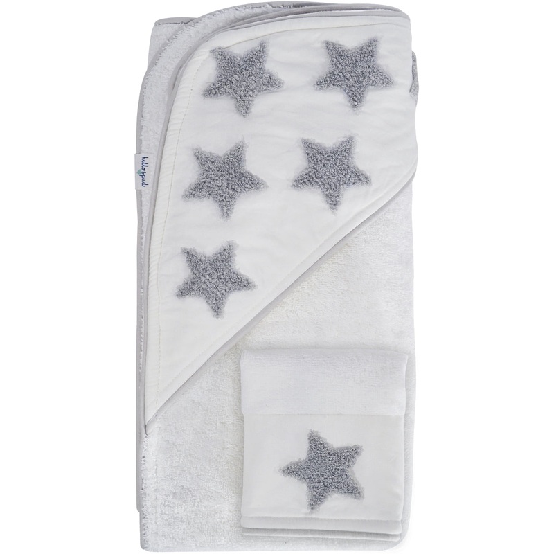 Hello Spud Organic Cotton Hooded Towel and Washcloth Set – Gray Stars