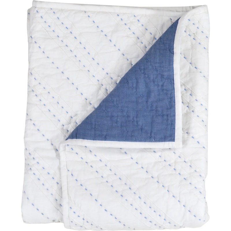 Hello Spud's Blue Diagonal Pintuck quilt is super soft and hand made with love. Your little boy with love to play and snuggle with it. Cotton shell. Sized for cribs and toddler beds. Quilt size is 36" x 45".