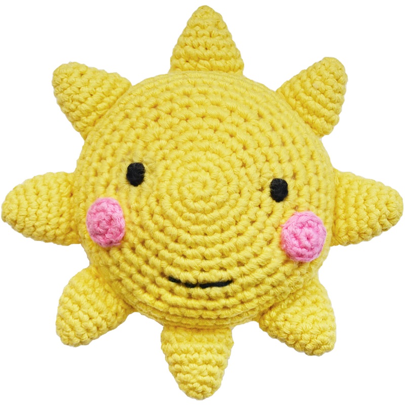 Hello Spud's cotton crochet sunshine rattle toy offers comfort and sensory play for your little spud. Great for photo ops.