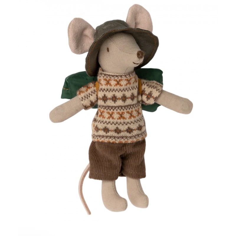 This mouse is well-prepared for a hiking trip in the wild nature. He is dressed for days of walking and brings his sleeping bag for nights under the stars. He has magnets in his hands. Add more accessories from the hiker collection for more play.SKU: 17-32