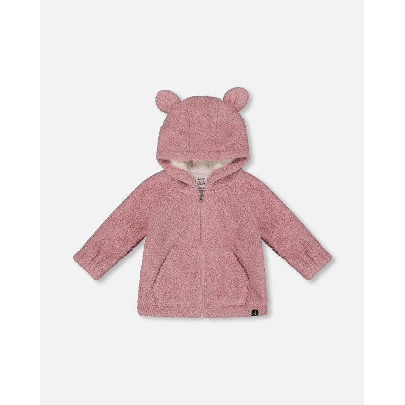 Hooded Full Zip Cat Plush Jacket Dusty Pink