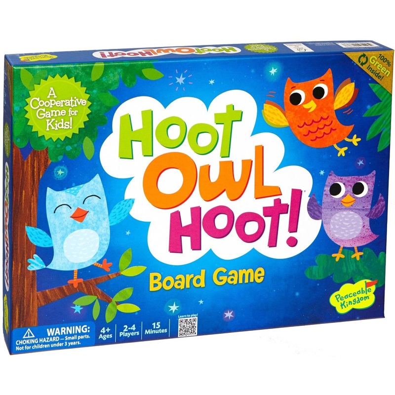 Players help the owls fly back to their nest before the sun comes up. Play a color card and fly to that space. Draw a sun card, and youre one step closer to the daylight. Help all the owls get home before the sun rises and everyone wins! The game is easy e