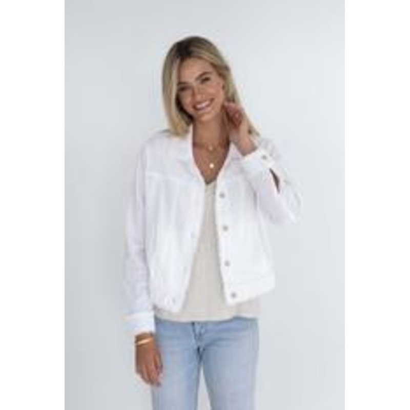 The jacket that goes with everything!Button through lightweight jacketFringe trimming on seams and hemsSide pocketsWooden buttonsSuper soft linen/viscose blendPlease Note: Fringe trim on Natural colourway is a mixed of natural and white threads, see photos