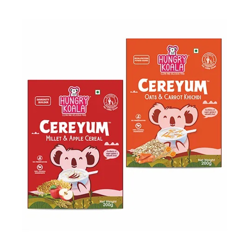 Hungry Koala Cereal Made with Natural Ingridients Millet Apple Oats & Carrot for Kids to Grow Healthy No Preservative or Additives or Maida 200 g Pack of 2