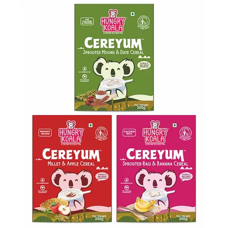Hungry Koala Cereal Made with Natural Ingridients Millet Apple Ragi Banana Sprouted Moong & Dates for Kids to Grow Healthy No Preservative or Additives or Maida 200 g Each Pack of 3