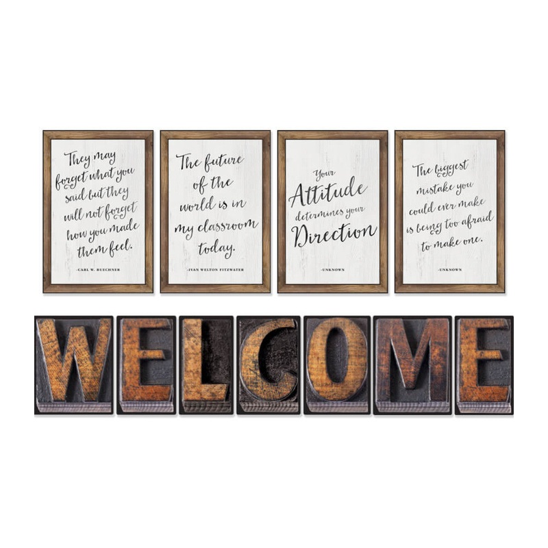 Create a welcoming classroom with the 11-piece Industrial Chic Welcome bulletin board set. This bulletin board display includes 7 letters and 4 inspirational posters to help students and visitors feel at home.
