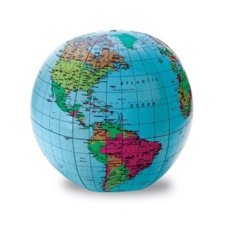 Make a game of geography! Toss this 12" globe to students and have them identify continents, countries, capitals, and oceans. Or, hand for display. Includes repair kit and activity guide. Grades 3 and up.