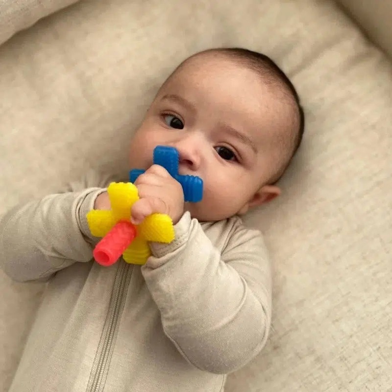 Sensory satisfaction! Soothe and massage babys sore gums with Itzy Ritzys Teensy Tubes! The textured hollow tube collapses and flexes reaching both front teeth and back molars for all stages of teething. **BPA and PVC free Care Instructions: Before use, ha