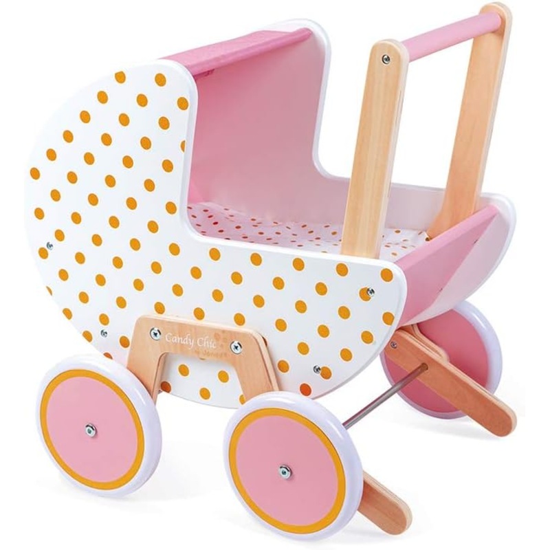 Condition: Open Box The Candy Chic pram is the perfect addition to any little one's playtime. With its pink color scheme and gold trim, this pram is both stylish and functional. Designed for children 18 months and over, it allows them to imitate adults and