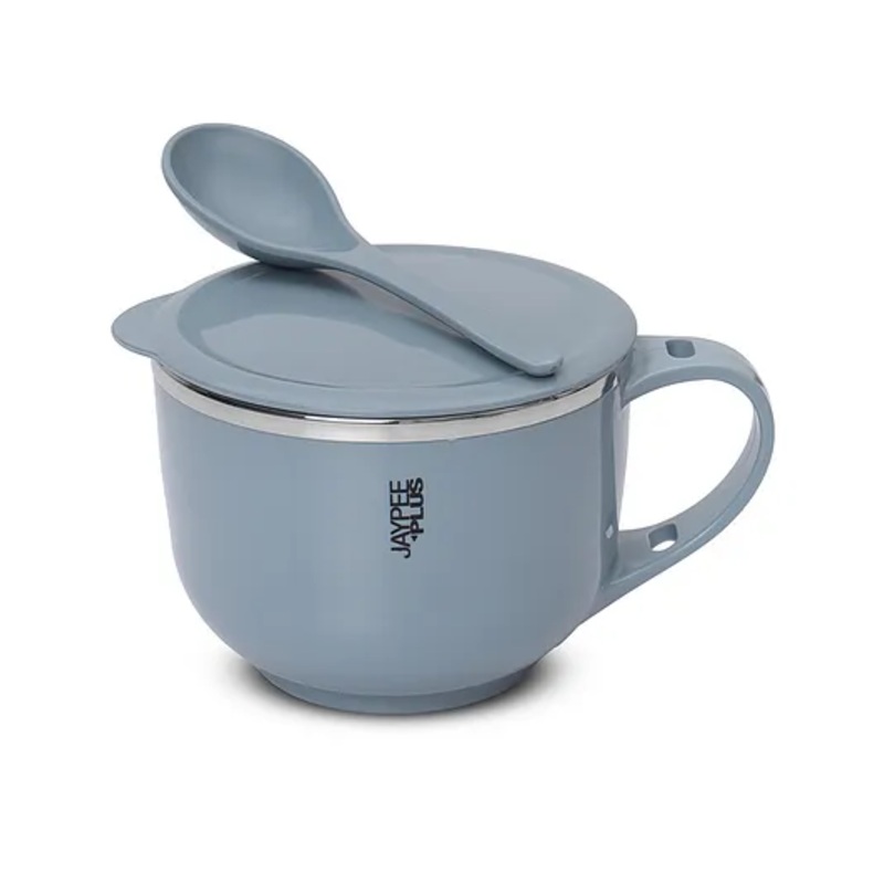 Jaypee Plus Stainless Steel Soup Bowl with Lid & Spoon Holder Souptok Maggi bowl Noodles pasta bowl Mug for kids – Blue