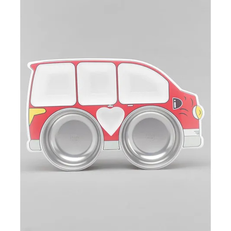 Jeep Shaped Plate with Lid & spoon Fork Set -Red