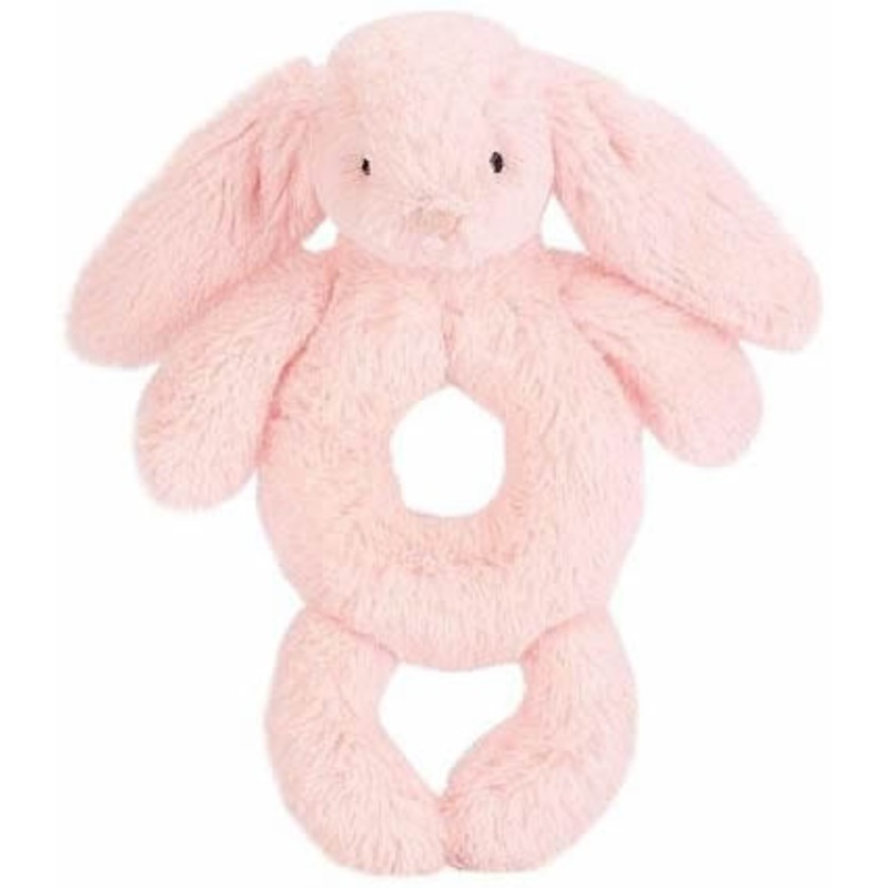 Blossom-soft with rosy fur, it?s the Bashful Pink Bunny Grabber! This playtime buddy looks just like a strawberry doughnut, and will keep little hands and ears very happy. With a shake-shake here and a rattle-rattle there, they?ll soon be composing their o