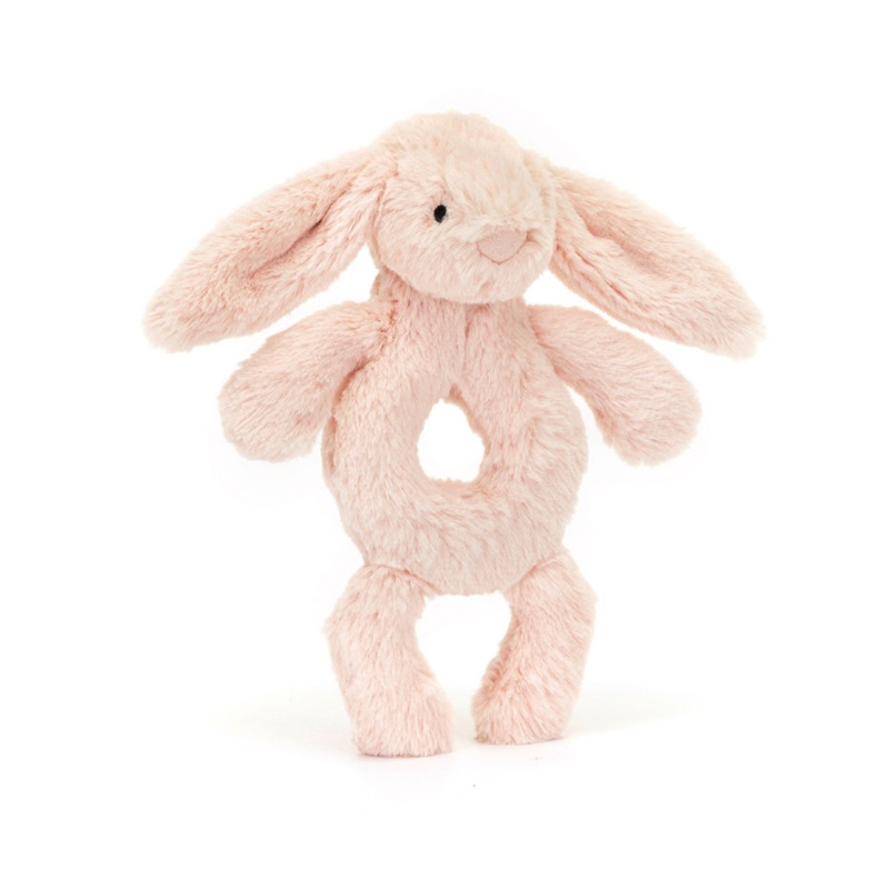 A treat for tiny hands, Bashful Beige Bunny Ring Rattle can be grabbed by its soft paws, long lop ears or ring-shaped tummy. When given a gentle shake it will sound the rattle, inside much to babys delight! Crafted in soft, mushroom coloured fur made from