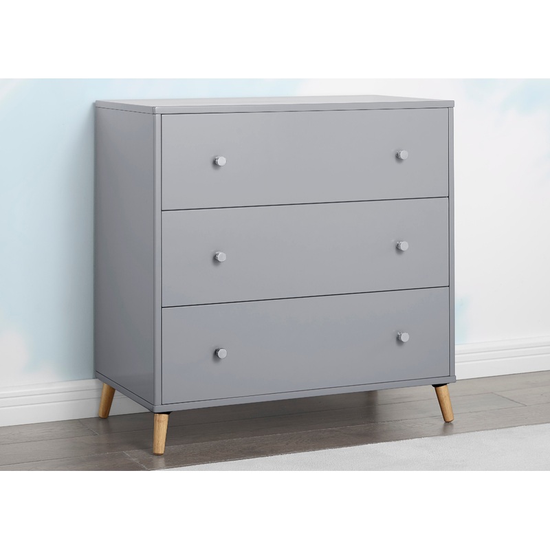The Jordan 3 Drawer Dresser by Delta Children is a must-have storage unit for stylish parents and kids! Designed to elevate modern nurseries or bedrooms, its perfect accompaniment to your Jordan crib with its splayed feet and two-toned detailing. With thre
