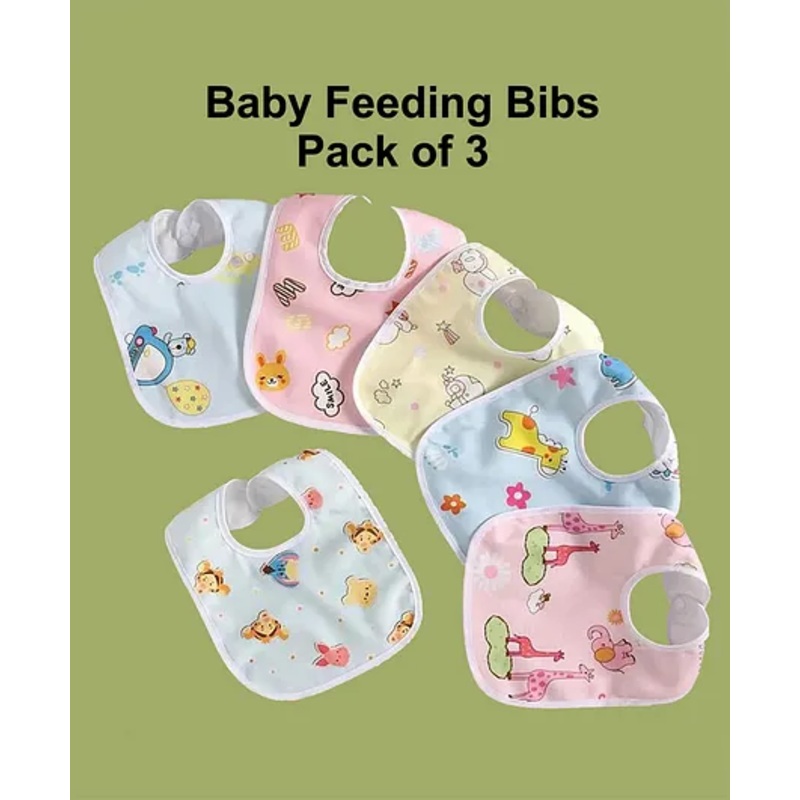 OCAL33215267101JOY BUZZ joy buzz Waterproof Feeding Bibs with Snap Button Closure Animal Print Pack of 3 - Multicolor
