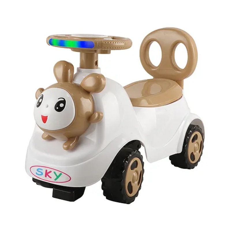 JoyRide presents a new range of excitingride-on toy cars for toddlers and kids. This ride-on-car features a carsteering with a Horn and LED lights, which keeps the baby indulged in hours ofactive play. This smart mini ride-on aims to create comfortable and luxuriousoutdoor and indoor fun playtime for kids. It is designed in bright colors withsmoothed corners and edges. It has a comfortable and broad seat that willprovide hours of fun playtime for your little one. JoyRide ride-on comes with ahigh backrest for your kid’s tender back. It is a great toy for enhancing arm& leg coordination and balancing. Crafted from high-quality virgin plasticmaterial which makes it an ideal pick for kids. Let your little ones controlthe steering and enjoy the unstoppable ride with this JoyRide Sky ride-on. Thismakes up for a great gifting item for the kids and is durable enough to lastfor generations!