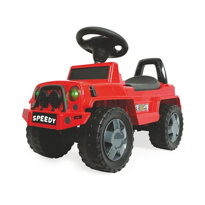 Realistic DesignThis ride-on Jeep features a rugged 4×4 design with big wheels and a backrestfor a comfortable ride.
