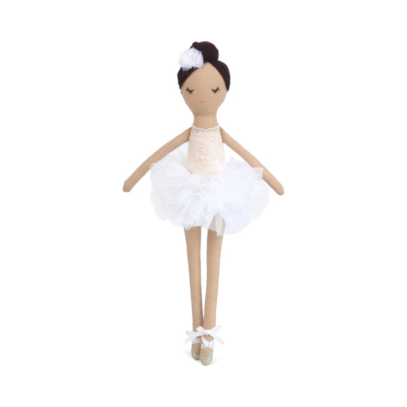 Katrina the Prima Ballerina is ready to twirl the night away in her elegant multi-layered tulle skirt, embroidered bodice, and classic lace-up ballet slippers. Designed to inspire endless hours of imaginative play, this stunning ballerina plush doll is per