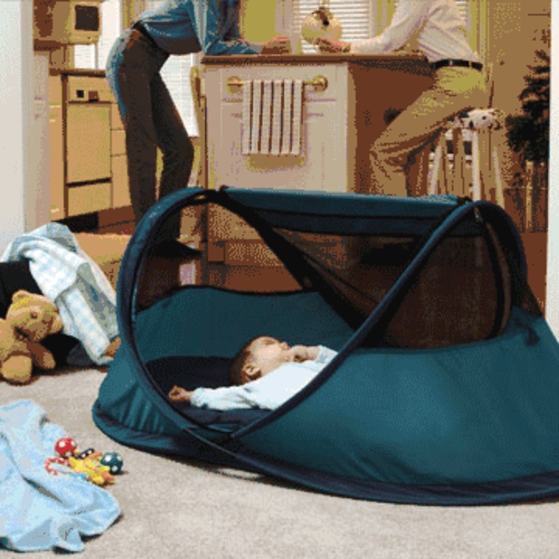 The PeaPod travel bed does it all for the on-the-go parent. The inflatable mattress helps protect baby from cold, damp floors while providing a comforting place to sleep. Zippered panels allow parents quick and easy access to baby from virtually any angle. The slick, easy to fold design makes it ideal for storage and use anytime. The Kidco PeaPod travel bed can be used indoors or outdoors and features a virtually indestructible frame and inflatable mattress (hand pump included).