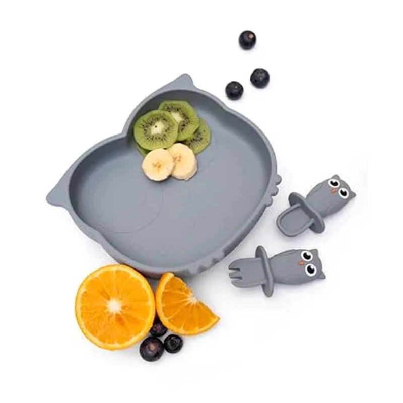Fun & Functional Design Adorable owl-shaped plate with divided sections for fun and balanced mealsComplete Feeding Set Includes a silicone plate, spoon, and forkSafe for Babies Made from BPA-free, food-grade silicone, soft and gentle for young eatersPromotes Self-Feeding Baby-sized utensils encourage motor skill development and independenceEasy to Use & Clean Microwave and dishwasher safe for everyday convenience