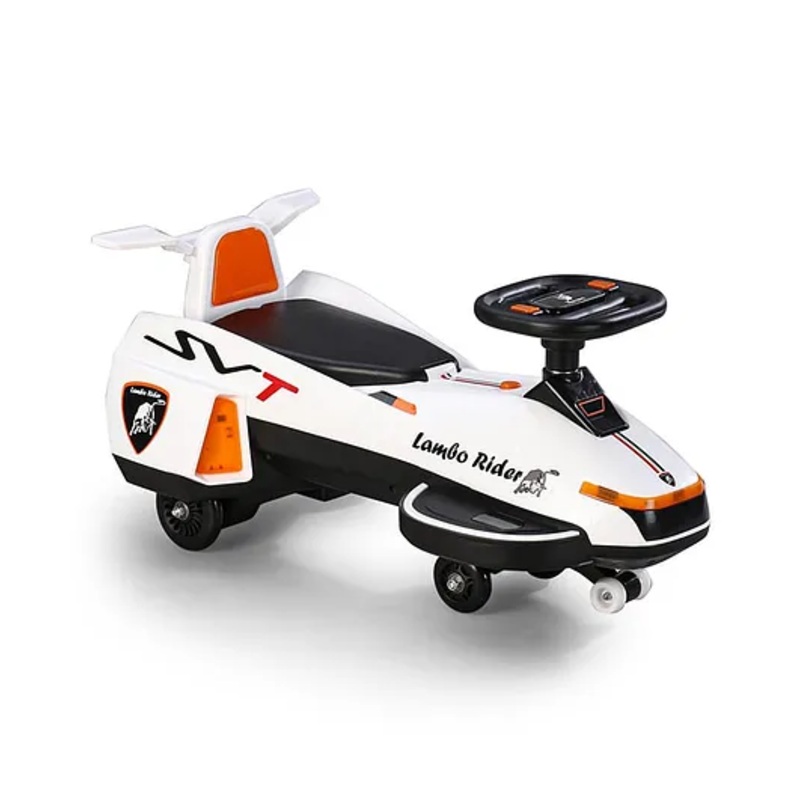 Kids Swing Car With Light & Music – White| Easy to Handle| Built for Rough Play| Encourages Physical Activity| Smooth PU Wheels