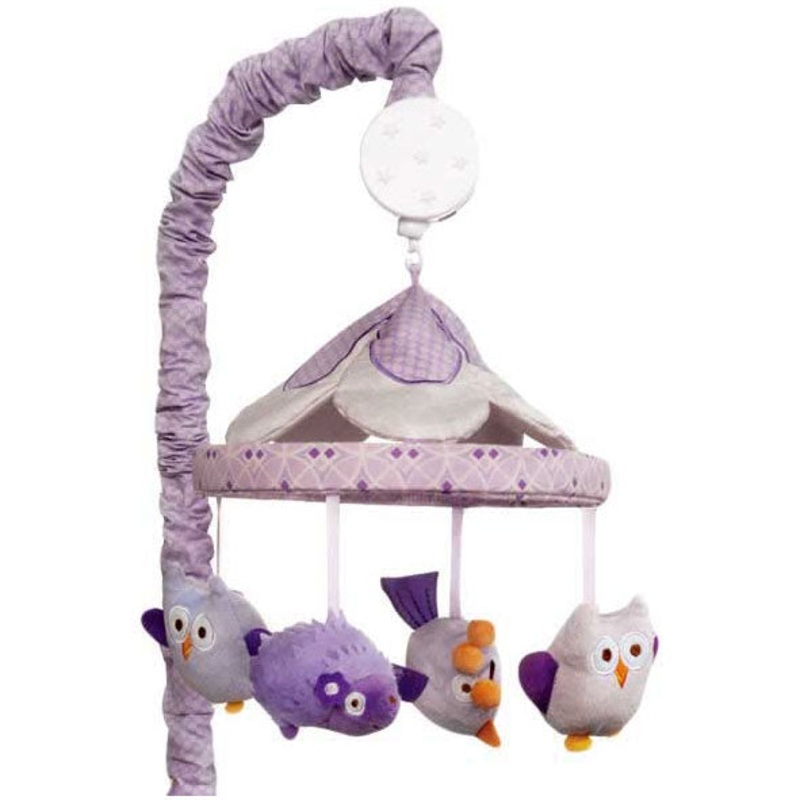 Your baby can watch colorful icons spin while Brahms' Lullaby plays, lulling your baby to sleep. This musical mobile attaches to most cribs and requires easy adult assembly.