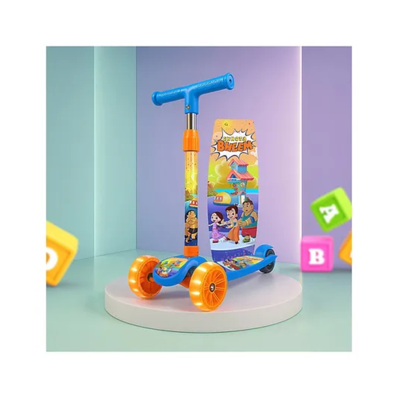 Kidsmate Chota Bheem Kick Scooter for Kids | 4-Level Height Adjustable & LED PVC Wheels | Non-Slip Wide Deck with Strong Push Brake Kids Scooter For Age 3+ Yrs | Max User Weight 50Kg – Blue