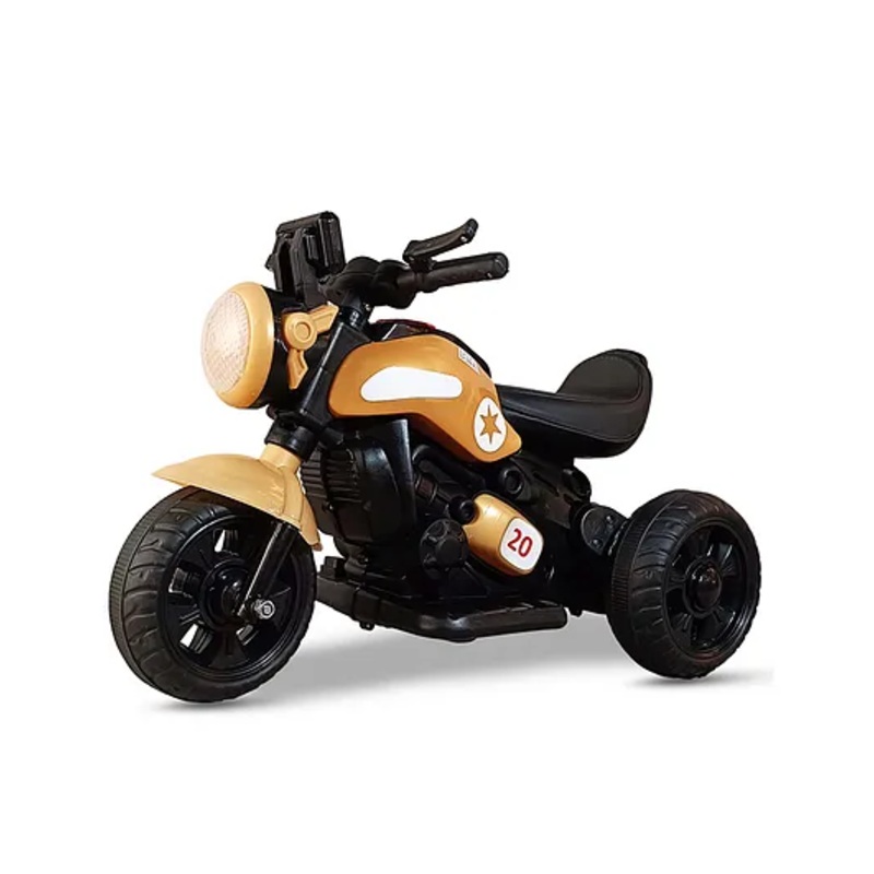 Kidsmate Pro Racer Electric Ride-On Bike for Kids | 3-Wheel Rechargeable Battery-Powered Bike with LED Lights, Music Player & Foot Accelerator | Dual Drive Battery Bike For Kids of Ages 2-5Y – Golden