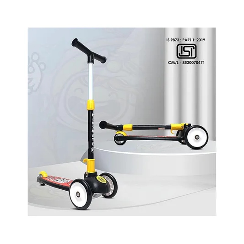 Kidsmate Speedy Kick Scooter for Kids ISI Certified with LED Wheel Lights, Height Adjustable Handlebar & Foldable Design & Rear Brakes for Kids- Black