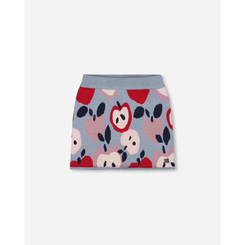 Knit Skirt Blue And Red With Apple Heart Jacquard