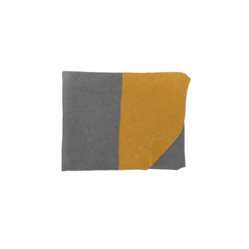 KNITTED BLANKET HONEYBEE MUSTARD – GREY 125 x 150 cm Mustard – Grey