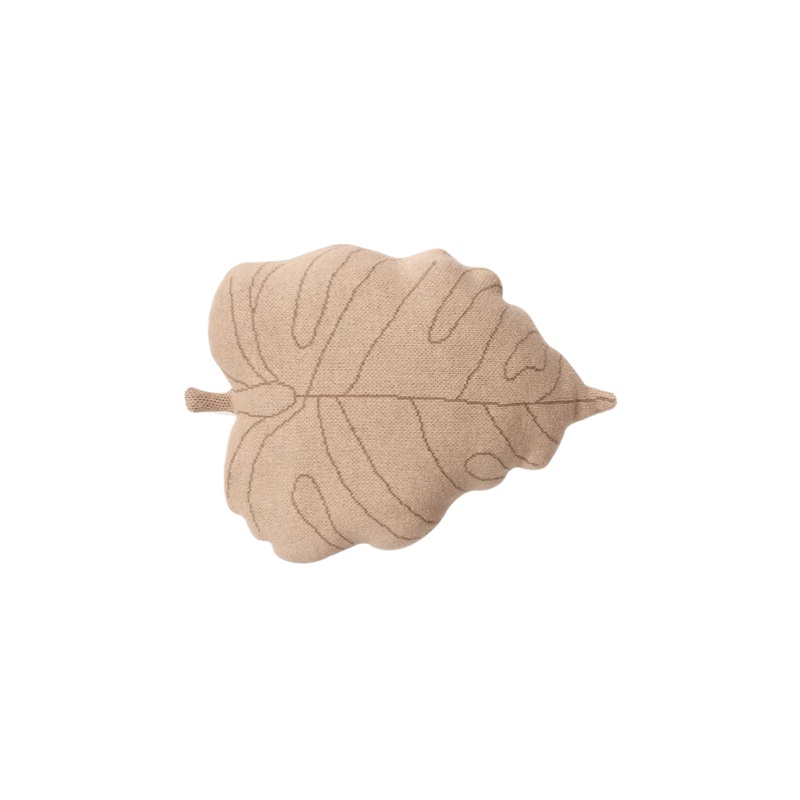 KNITTED CUSHION BABY LEAF ROSE BEIGE 28 x 42 cm Beige