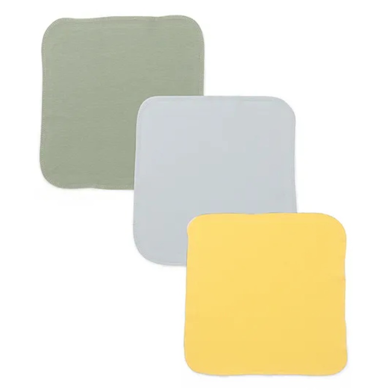 Kookie Kids Interlock Solid Color Wash Cloth Pack of 3 – Yellow Green & Light Blue