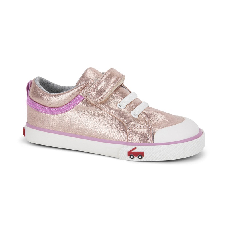 Explore the fun updates on this classic, fan-favorite sneaker for girls. From sweet and sassy, to playful and bright, the faux elastic laces and an adjustable hook-and-loop strap make on/off effortless, leaving her more time on the playground.Canvas-lined