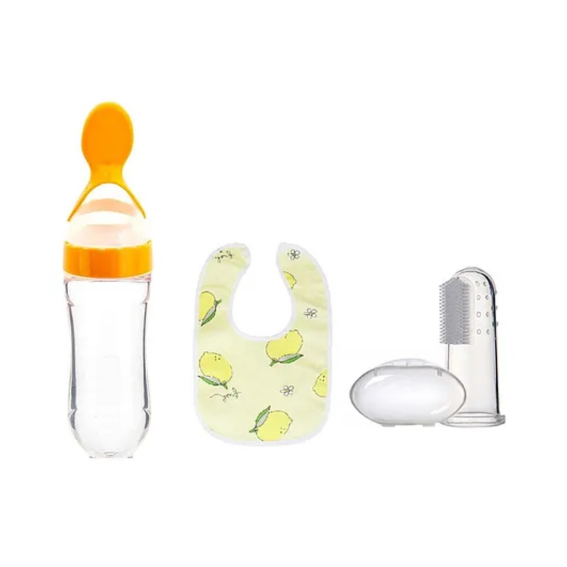 Kritiu Baby Non-Toxic Food-Grade Silicone Food Feeder Printed And Fingure Toothbrush With Case Combo