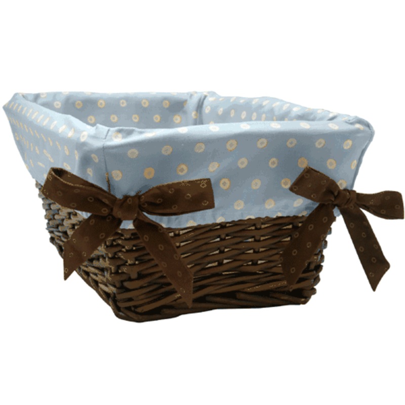 The Jake Basket Liner is designed to fit the Lambs & Ivy Wicker Baskets that measure 17" L x 11" W x 7" H. The fabric is made from 100% cotton. Care instructions: machine wash cold, gentle cycle, wash separately, do NOT bleach, tumble dry low, iron on lowe