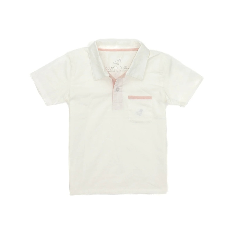 LD Charlie Polo PearlProperly TiedYour new favorite polo75% Cotton, 23% Rayon, 2% SpandexOpen sleeveLeft Chest monochromatic logo embroidery2 button placketAccent PocketMachine wash cold with like colors; gentle cycle. Do not bleach. Tumble dry low & remov