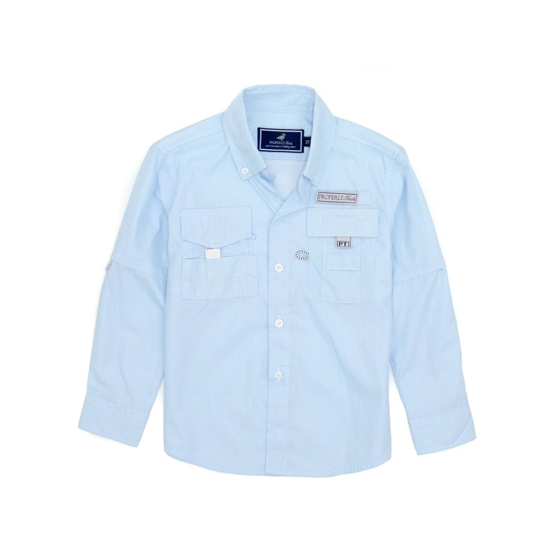LD Performance Fishing Shirt AquaProperly TiedThe performance fishing shirt is a cool, classic style with exceptional fabric. Classic fit100% polyesterButton down collarVelcro sleeve holderVented mesh backSignature buttons with matching threadMachine washc
